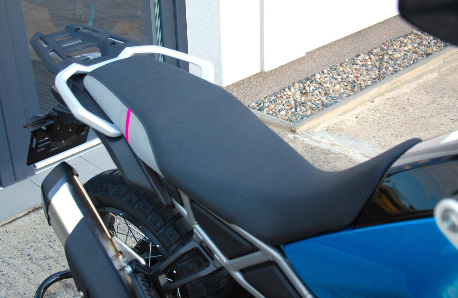 • Pohodlně… Propracovaná ergonomie minimalizuje únavu a neomezuje vás ani při vícedenní jízdě. Řídítka lze nastavit až o 10mm vpřed, nebo vzad. Výšku motocyklu / sedla lze snížit o 20mm na přepákování zadního tlumiče.